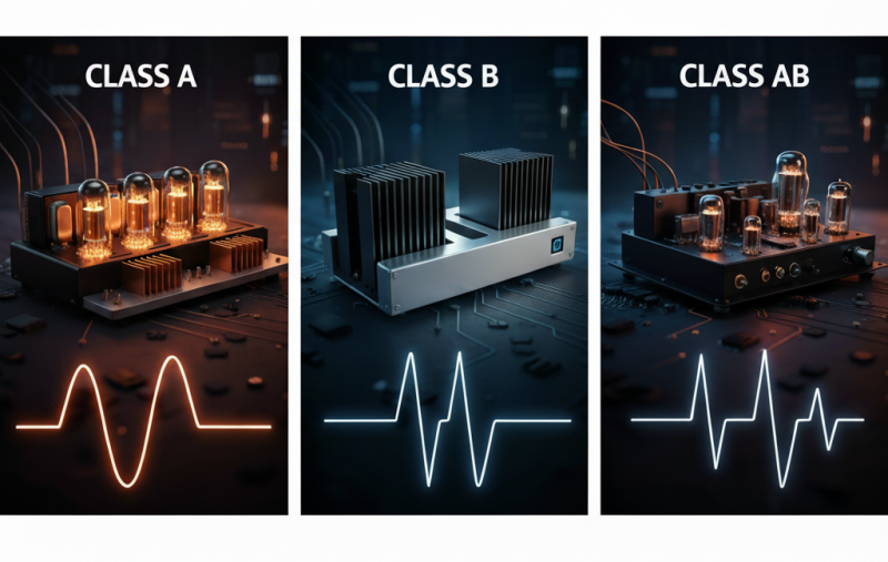 Усилители мощности звуковой частоты классифицируются по способу работы с входным сигналом и принципу построения усилительных каскадов. Основные классы усилителей: