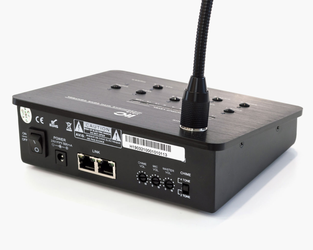 - Каскадирование до шести микрофонов с настройкой адреса и иерархией приоритета.