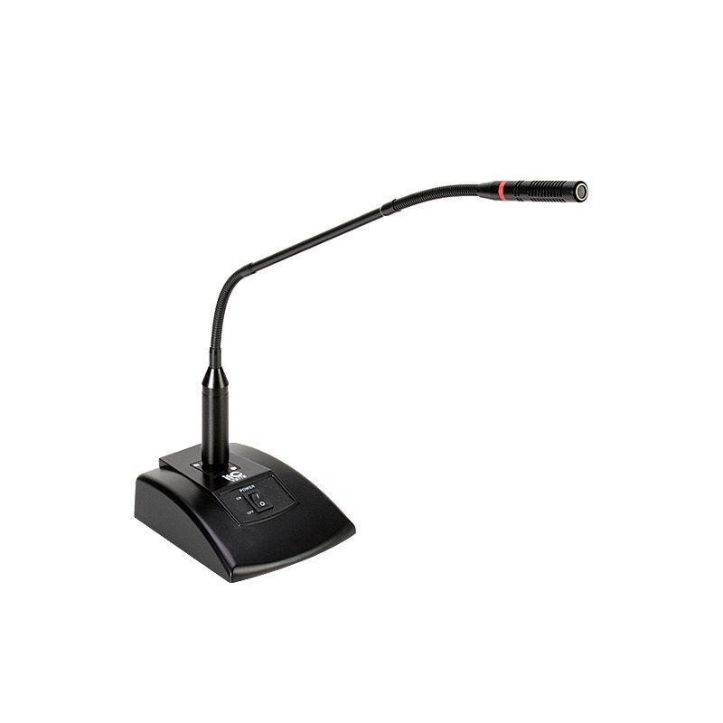 ITC Audio T-511G — надёжный дикторский микрофон на гибкой шее, специально разработанный для систем речевого оповещения и конференц-связи. Устройство оснащено удобной кнопкой включения/выключения с ярким световым индикатором и длинной гибкой шеей для точного позиционирования. Настольная подставка обеспечивает устойчивость, а подключение к усилителю осуществляется через стандартный разъём, что делает микрофон простым в интеграции и эксплуатации.