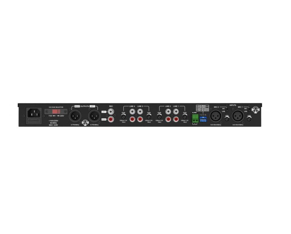 | Входы линейные / AUX / EMC | MIC 1-2 (LINE): 150 мВ – 1,5 В / 10 кОм, балансный; LINE 1-4: 250 мВ – 2,5 В / 10 кОм, небалансный |