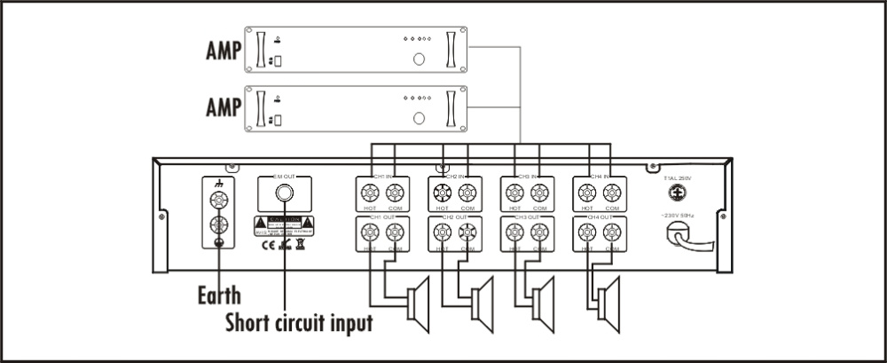 Блок ITC T-6237 предназначен для эффективной защиты линий громкоговорителей в результате грозовых явлений. Блок включается в разрыв между выходами усилителей и линиями громкоговорителей. Блок должен быть тщательно заземлен, так как его работа основана на перенаправлении высоковольтного разряда в землю. ITC T-6237 имеет 4-ре независимых входных и выходных канала, работающих с напряжением от 70 до 100В. При попадании высоковольтного электрического разряда, вызванного грозовым явлением, блок осуществляет автоматическую "дискоммутацию" входов и выходов, защищая тем самым выходные каскады усилителей от повреждения.